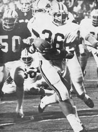 JJ Jennings carries the ball against the Hawaiians after his trade to Philadelphia HOF: In 1975, when you were playing with the Bell, the team defeated Memphis 21-15 in Philadelphia. How rewarding was that for you? JJ: It was great to win. I went over to the hotel and hung out with those guys. When they came to play they gave me my championship ring. The Southmen won the Central Division and we received rings for that. HOF: Where were you when you heard the league had folded? JJ: I think I heard it on television. I do remember Willie Wood leaving a message for me. All I could do was think, "What do I do now?" Montreal of the Canadian Football League owned my rights so I went up there with them for some practices, Marv Levy was the coach of the team. Kansas City called. It was a real hard situation. To tell you the truth I went out to get some drinks at the local establishment. HOF: The Pro Football Hall of Fame has a WFL exhibit that features your Memphis Southmen helmet how does that feel? JJ: When I first heard of it I didn't realize the WFL had a Hall of Fame. Then I realized it was the Hall of Fame in Canton, I was surprised. I need to make a road trip out there to check it out. I've been telling my friends about the exhibit and this web site. HOF: When the WFL folded, and Memphis and Birmingham were trying to get into the NFL, did you think John Basset had a good chance to get into the NFL in 1976? JJ: Yes, I definitely did. There was talk of both teams entering the NFL, like the ABA and NBA had merged, but in the end it didn't work out. I thought if any owner could do it, John Basset could. HOF: How would you summarize your experience in the WFL? JJ: I loved every minute of it. It was a great league. It gave a lot of players the chance to show what they could do. The media supported us in some of the smaller markets like Memphis, Birmingham, Hawaii, Shreveport and Charlotte, it was harder for the WFL in New York and Chicago. The WFL was a great experience for me and I look back fondly at all those days. NOTE: The JJ Jennings interview was conducted by Jim Cusano and Richie Franklin. This interview appeared on the former WFL Hall of Fame Website, and is used with permission. This interview is the property of the World Football League Website and may not be used without the permission of the Website owners. |