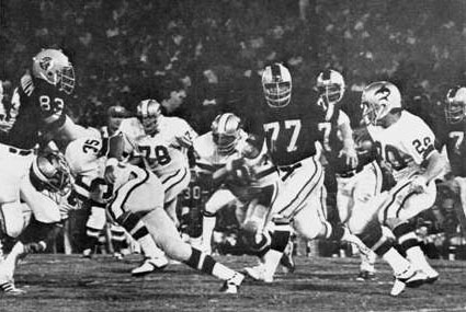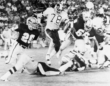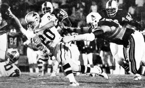 Tommy Durrance running from Sun DT Dave Roller in week three at Jacksonville Where you contacted by any teams to join the WFL in 1975? No I wasn't. It was all for the best. I had gotten football out of my blood by then. I returned to the family business. I still keep in touch with some of the guys though. In your own words, how would you describe your experience playing in the World Football League? The WFL was the best time I had playing football. I led the league in rushing for a short while, which is something I'm proud of. I really enjoyed my teammates and playing for the Sharks. The fans were great, and I put the money problems out of my mind. It was a great time to be alive- I enjoyed it. NOTE: The Tommy Durrance interview was conducted by Jim Cusano. This interview was slated for the former World Football League Hall of Fame Web site, but was never posted. This interview is used with permission and is property of the World Football League Web site and may not be used without the written consent of the Web site owners. NOTE: The Ron Coppenbarger interview was conducted by Jim Cusano and Richie Franklin. This interview was slated for the World Football League Hall of Fame Web site, but was never posted, and is used with permission. This interview is property of the World Football League Web site, and may not be used without the written permission of the Web site owners. |