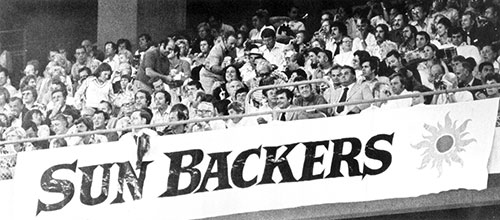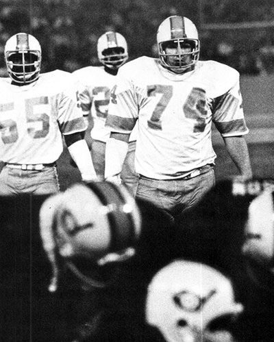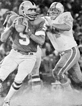 Dave Roller closes in on Bell QB King Corcoran at Anaheim Stadium on October 23, 1974. WFL: The Sun played their WFL season opener in Birmingham, against the Americans, what was the mood on the team? DR: I had been to the south, I'm from Tennessee and went to school at UK, and I'd been to Birmingham, but a lot of the guys had not. There was a lot of anticipation and guys were thinking, "Is it going to be sold out? Will there be a good crowd?" We had 53,000 fans come out that night. We had the kickoff, I was on kickoff coverage, and after the opening kickoff I ran up to the Americans back and I took the ball away from him. The referee came up wanting the ball and I said, "you ain't getting' this damn ball I'm taking that." I just ran up and took it; I don't know what made me do it. I just wanted that ball. So after the play I ran up and took it from him- the first ball used in a Southern California Sun WFL game. The Pro Football Hall of Fame wanted that ball and I never gave it to them- I think it still has the original air in it. WFL: Despite losing the opener how would you describe the teams' play in Birmingham? DR: We moved the ball well, racked up some yards but didn't score many points. It was a struggle defensively. I thought with that kind of defense and with the type of people we had on both sides of the ball I thought that it was going to take off good. We (the league) almost did. We (the league) just didn't have the money that it took to make it last. WFL: How would you compare the behind-the-scenes operations of the WFL to the NFL? DR: Everything that we did was no different than in the NFL- the hotels were first class; we went over to Hawaii and stayed in Chris Hemmeter's hotel on Waikiki Beach. The training camp, meals, travel, equipment- all of it was first class. WFL: How did the Anaheim community receive the Sun? DR: Being in Anaheim in Angels' Stadium was first class, the stadium was fairly new. We had a great crowd and I think the fans liked the magenta and orange uniforms of the Sun and all the fan fare the league created. I thought we put on a good show. Anaheim supported us well; we drew about 30,000 fans that first season- all of them to Wednesday and Thursday night games.