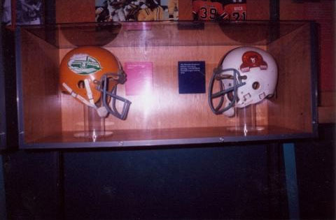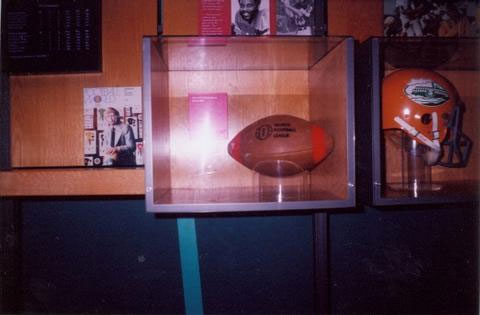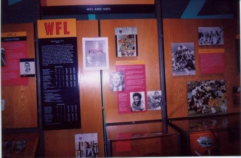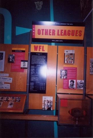 WFL In Canton The pictures below are from the World Football League display that appears at the Pro Football Hall of Fame in Canton, Ohio. When visiting the HOF checkout their exhibit in "The Other Leagues" room.