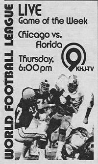 WFL Fast Facts - Gary L. Davidson initiated discussions on a proposed professional football league on August 2, 1973 that would eventually encompass the entire world. - It was reported on October 2, 1973 that the World Football League was in operation and would start play in July, 1974. - Jim Seymour was the first WFL player signed. He was offered a contract with the Chicago Fire on January 8, 1974. - The World Football League held the first league meeting in Los Angeles, California on January 14, 1974 with representatives from the following areas: Birmingham, Boston, Chicago, Detroit, Florida, Honolulu, Memphis, New York, Philadelphia, Southern California, Toronto, and Washington D.C. WFL Commissioner Gary L. Davidson presided over this meeting where he announced that the league would kickoff in July with six rules dramatically different from the National Football League. - The World Football League held their first collegiate draft on January 22, 1974 and QB David Jaynes of Kansas was selected by Memphis (later Houston). - The World Football League held their first professional player draft on March 18, 1974 with the Washington Ambassadors (later Florida Blazers) selecting RB Charlie Evans from the New York Giants. - On April 4, 1974 the World Football League and the TVS Network sign a contract that guarantees the WFL a nationally televised Game of the Week. - The April 15, 1974 cover of Sports Illustrated was scheduled to showcase WFL Commissioner Gary L. Davidson along with NFL All-Pro's Calvin Hill and Ted Kwalick. Both players had recently signed a future contract to play for the Hawaiians in 1975. The WFL cover was bumped for the Atlanta Braves' Hank Aaron who broke Babe Ruth's all-time record of 714 home runs. Click here to view. - The WFL signed a contract with the World Sports Broadcast Network to form the World Football League Radio Network. In 1974 the network started with just 29 stations, but expanded to 118 by seasons end. The announcers were Frank Buetel on play by play, and Paul Flatley was the color commentator. During the 1975 season the network again had Frank Buetel and Jim Peterson as the color commentator. The World Football League Radio Network carried a Game of the Week both seasons. The network was carried by 125 stations in 1975. - The logos of each WFL team were created or coordinated by Ray Engle Associates of Los Angeles to project a corporate image. The team uniforms, coaches attire and officials uniform were designed by the Sand Knit company of Wisconsin. - Did you know that the bill, designed to keep the WFL out of Canada, specifically Toronto, was table by health minister, Marc Lalonde? The bill, designed specifically to stop the Toronto Northmen entitled the "Canadian Football Act," was tabled on April 10, 1974 and passed in principle by April 26, 1974. - Did you know that it was a New York system analyst who invented the "Action Point?" That man was Bill Finneran. He would also propose to the WFL in 1975 the color coded pants. - Did you know that the WFL used a device to make yard measurements easier? In 1974, the WFL introduced a device called a "Dicker Rod," a device which was three yards in length. One end would be placed on a five yard line and a movable marker would then be moved to the position of the first down, thus only one official need run out onto the field for a measurement. - Jane Chastain becomes the first female to broadcast a pro football game on national television. Chastain was in the broadcast booth for the TVS Sports Network along with Merle Harmon and Alex Hawkins as their "guest" commentator for the New York Stars-Philadelphia Bell WFL game on July 25, 1974. She later broadcasted an NFL game, October 13, 1974, on the CBS Network alongside Don Criqui and Irv Cross. This was another first for the World Football League. - Did you know that when the Detroit Wheels folded, its players were selected by other teams in a four round, special selection process conducted by the league? This draft is known as a dispersal draft. - Did you know the WFL had its own player association? Formed in late September of 1974, the WFLPA had the following officers: Charlie Harraway of the Birmingham Americans as President. John Huarte of the Memphis Southmen was named first Vice-President and Ike Lassiter of the Jacksonville Sharks was second Vice-President. Jon Henderson of the Detroit Wheels was the Secretary and Joe Robb of the Shreveport Steamer was the Treasurer. The WFLPA appointed Alan R. Miller as its legal counsel. Some of the player reps were Bob Davis, Florida, Virgil Carter, Chicago, Dave Williams, Southern California, Sam Silas, Portland, John Elliott, New York, and Claude Watts of Philadelphia. - When the financially troubled Portland Storm headed to Honolulu to play the Hawaiians, the team was fed with $2500.00 of meal money collected by local Portland citizens. A much moved Portland coach Dick Coury said, "It"s beautiful for the people of Portland to do something like that. It"s amazing." During the game, however, the Storm players didn"t stay around for the final gun. When Honolulu scored a late touchdown to make to make it 23-0, the Portland players stalked off the field and headed for the showers with two seconds to go in the game. - At a league summit on November 22, 1974 in Memphis to discuss the next season of the WFL, dubbed "WFL 75," several new cities were mentioned as having investors ready to begin play in 1975. San Antonio, Louisville, Tulsa, Akron, Connecticut, Syracuse, Phoenix, Montreal and Toronto were named. Paul Hornung, former Green Bay Packers star was reportedly interested in a franchise in Louisville, KY. Chris Hemmeter assumed the role of Commissioner at this meeting. - During the "WFL 75" meeting, Bob Wussler - CBS Vice President in charge of sports told WFL officials in Memphis that his network would carry WFL games beginning in 1976 if the new league can prove credibility during the 1975 season. - Everyone knows 