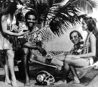 QB Daryle Lamonica leaves the Oakland Raiders for the Sun as Curley Morrison and Marlin McKeever look on.