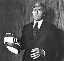 WFL founder Gary Davidson Economics of Sports in the 70's In the 70's, the National Football League, headed by Commissioner Pete Rozelle, held a monopoly on professional football. The NFL secured national television contracts with all three of the major broadcasting companies, many of the NFL teams in major markets signed exclusive agreements to stadiums, and many NFL clubs worked closely with the national news media and political concerns. The NFL owners held the upper hand in negotiating salaries with the players due to the lack of any competition in the marketplace. In the 70's, the average salary for a NFL player was about $25,000, compared to the league minimum of $175,000 today. The cost of operating a NFL franchise was estimated at $8-10 million a year. Average ticket prices for NFL games were around $10. Sports in the mid 70's In 1973, Gary L. Davidson, the founder of the American Basketball Association and the World Hockey Association went forward with the concept of creating a rival football league that would challenge the established NFL. The allure of sports and entertainment was coming of age in the 70's. Players were starting to demand higher salaries, television was beginning to flex its financial muscle and many cities were left without the hope of ever having a NFL franchise. The concept of a rival league appealed to Davidson and his associates who felt there was a "gold mine" waiting for them underneath the pro football landscape. Despite a shaky economy, runaway fuel costs, and rising interest rates, Davidson went forward with his plan. Marriott House, Los Angeles-the Birth of the WFL At 10:25 AM, January 14, 1973, Gary Davidson announced the creation of the World Football League. Davidson announced the WFL original franchises; New York, Philadelphia, Washington, Boston, Florida, Chicago, Detroit, Southern California, Memphis, Birmingham, Toronto and Hawaii. During the news conference Davidson also announced his plans for a global football league with teams in London, Tokyo, Milan, Tele Viv and Frankfurt. Below is a picture from the very first WFL meeting in Los Angeles on January 14, 1973.