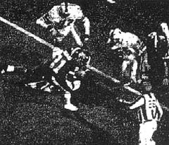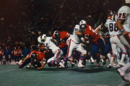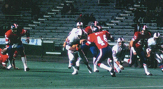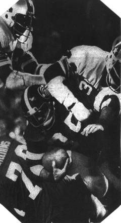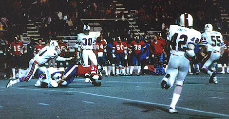 Tommy Reamon of the Blazers is stopped short on a crucial action point attempt after Rod Foster's 76-yard punt return.