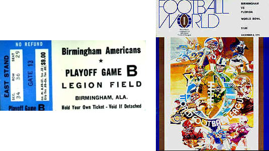 1974 Season Book - The World Bowl Sports Daily December 5, 1974 The World Bowl Championship Game December 5, 1974, Birmingham, Alabama The Birmingham Americans versus the Florida Blazers Americans Win World Bowl, 22-21 Over Blazers Birmingham WFL Champions