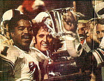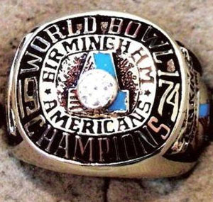 1974 World Bowl I ring. NOTE: This page was researched and written by by Jim Cusano and Richie Franklin. Photos were provided by Greg Allred, Chuck Gardner, Sports Illustrated, and Sport Magazine. Team stats were researched by Tod Maher and Mark Speck. |