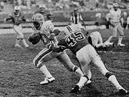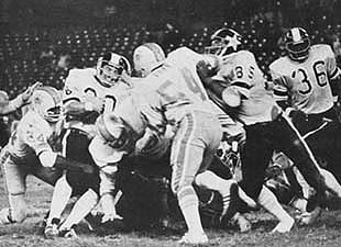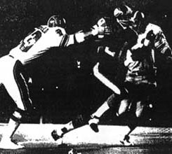 Jacksonville Sharks 21, Hawaiians 14. jacksonville, fla.; Eddie McAshan, making his pro debut, drove the Jacksonville Sharks 80 yards twice in the fourth quarter and pulled out a 21-14 victory over the Hawaiians. McAshan, ran one yard with: 20 seconds remaining to give the Sharks the win. Trailing Hawaii 14-7, McAshan hit Keith Krepfle with a 11-yard scoring pass and then drove the Sharks again down field to set up the touchdown run with option passes and the running of Tommy Durrance. (Pictured above, Tommy Durrance runs for daylight against Hawaii.). This game was played on August 8, 1974 and was the TVS Network WFL Game of the Week. Jacksonville Sharks; Passing � McAshan 5-13-88-0, Oliver 6-7-57-0, Stephenson 1-1-0; Rushing � Durrance 14-55, McAshan 11-52-1t, Lake 13-48-1t, Oliver 6-9; Receiving � Krepfle 3-70, Buie 3-25, Whittier 2-32, Lake 2-9, Scott 2-9. Hawaiians; Passing � Weese 9-19-107-1t; Rushing � O�Leary 9-28, Buchanan 14-24, Weese 3-20-1t-, Preston 2-11, Taggares 2-8; Receiving � O�Leary 3-27, Richardson 2-37, Powell 2-16, Delaney 1-18, Taggares 1-9-1t.