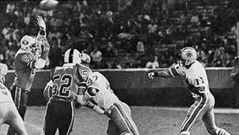 Birmingham Americans 22, Chicago Fire 8. chicago, il.; A crowd of 44,732 watched at Chicago's Soldier Field as the Birmingham Americans improved to 8-0 by beating the hometown Fire 22-8. The game was played on Thursday, August 29, 1974 and it was the second week in a row that the Fire appeared on the TVS Game of the Week. The Americans controlled the game on a blend of George Mira's passing and a solid running game featuring Paul Robinson, Charley Harraway and Art Cantrelle. Chicago cut the Birmingham lead to 14-8 on a 28-yard pass from Virgil Carter to James Scott before half time, but the Americans clinched the game late in the fourth quarter on a nine-play, 66-yard drive, capped by Cantrelle's 3-yard sweep for a touchdown. The Americans held on to first place in the Central Division as Chicago fell to 6-2. (Pictured above, Virgil Carter throws against the American pass defense). Chicago Fire; Passing � Carter 19-43-263-1t-3i; Rushing � Kellar 11-59, Wyatt 3-11, Pinder 3-3, Potts 1/-3; Receiving � Dolbin 5-77, Scott 5-72-1t, Kellar 5-54, Pinder 1-38, Burchfield 1-17, Wyatt 1-5. Birmingham Americans; Passing � Mira 12-28-139-1t-1i, Reed 0-1-0-0-1i; Rushing � Harraway 17-80, Cantrelle 11-58-1t, Edwards 12-57-1t, Robinson 4-11, Mira 2-6; Receiving � Jenkins 6-69, Harraway 2-9, Bishop 1-20, Robinson 1-19-1t, Barrios 1-15, Edwards 1-7.