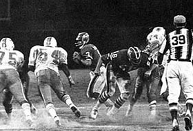 Birmingham Americans 8, Florida Blazers 7. birmingham, al.; Matthew Reed led the Americans to a 8-7 win over Florida before a Legion Field crowd of 35,529. Reed led Birmingham 80 yards on 10 plays in the fourth quarter and then ran the final two yards for a touchdown on a quarterback keeper. On the action point attempt, Reed passed to Jim Bishop to give the Americans their ninth win in a row. The Blazers scored early in the third on a 43-yard pass from Bob Davis to Tommy Reamon, but couldn't hold the lead. Florida fell to 6-3 and into a tie for first place with the New York Stars. (Pictured above, Jimmy Edwards of the Americans cuts through the Blazers). Birmingham Americans; Passing � Mira 8-17-86-0-0, Reed 2-7-18-0-1i; Rushing � Harraway 10-48, Reed 4-25-1t, Robinson 7-15, Cantrelle 3/-1, Mira 1/-2; Receiving � Jenkins 6-69, Edwards 2-21, Powell 1-9, Bishop 1-5 Florida Blazers; Passing � Davis 11-30-147-1t-0i, Maslowski 0-2-0; Rushing � Strong 11-61, Reamon 19-55, Davis 1-21, Whitfield 1-4; Receiving � Strong 3-38, Maslowski 3-36, Reamon 2-48, Whitfield 2-10, Bryant 1-15