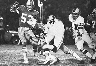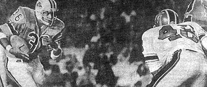 Florida Blazers 23, Portland Storm 0. orlando, fla.; The Florida Blazers, who already clinched the Eastern Division title, all but eliminated the Portland Storm from playoff competition as they downed the Storm 23-0 before 11,672 fans in central Florida. After a scoreless first half, rookie running back Tommy Reamon from Missouri bolted for three third quarter touchdowns. The game was to have been played in Portland, Oregon, but a promise of transportation and $50,000 changed the plans. Portland General Manager Ron Mix expressed his displeasure at the switch, saying his team had been "forced" to play in Orlando. "Our choices were to win a game by forfeit, as we saw it, and not get the players any money, or come to Orlando and at least have a modest payday for them," Mix said. WFL officials wanted the game played in Florida due to the request of an investment group that was reportedly willing to keep the team in Orlando. (pictured above, quarterback Bob Davis is tackled by Portland Storm linebacker Jerry Inman). WFL Week Nineteen MVP: Tommy Reamon, Florida Blazers WFL Week Nineteen Top Performers: Passing - Randy Johnson, Hawaiians 17 of 32, 209 yards, 2 touchdowns Rushing - Jim Nance, Shreveport Steamer 24 carries, 160 yards, 1 touchdown Receiving - Tim Delaney, Hawaiians 9 receptions, 128 yards WFL Standings: Eastern Division: Florida 13-6, Charlotte 10-9, Philadelphia 8-11, Jacksonville 4-10 Central Division: Memphis 16-3, Birmingham 14-5, Chicago 7-12, Detroit 1-13 Western Division: Southern California 13-6, Hawaii 8-11, Portland 7-11-1, Shreveport 7-11-1 NOTE: This page was researched and written by Jim Cusano. This page appeared on the former World Football League Hall of Fame Website and is used with permission. |