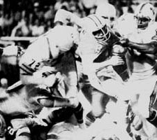 1975 Season Book - Week 4 Sports Daily August 23, 1975 Philadelphia Bell File Suit Over Duane Thomas as "Big Three" Arrive In Town Hawaiians sign former NFL star running back Duane Thomas The World Football League dealt with a possible lawsuit from the Philadelphia Bell. Richard Iannarella, Philadelphia Bell General Manager, levied a lawsuit at the WFL when the Hawaiians signed former Washington Redskins running back Duane Thomas. The Hawaiians, desperate for a running back and a gate attraction after Calvin Hill tore his knee up, signed the former NFL back whose rights belonged to Philadelphia. Iannarella told the press, "If Thomas plays for Hawaii we will sue if Hemmeter doesn't arrange some sort of compensation. We'll give the President an opportunity to straighten it out, but we aren't going to take this lying down." The "Big Three" were in Philly and Larry Csonka was attacking the Philadelphia sports media. Csonka, who watched his Memphis Southmen fall to the Bell 22-18 before 5,051 fans, tore into the Philadelphia media, "It is the responsibility of the press to let people know when a city has a team. The WFL is here to stay. Philadelphia seems to be the only problem in this respect." On the field, Southern California quarterback Pat Haden continued to lead the WFL in passing with 901 yards and 59 of 96 completions for 10 touchdowns. San Antonio's Johnnie Walton became the first WFL passer to surpass the 1,000-yard mark in the 1975 season with 1,094 yards. Anthony Davis of the Southern California Sun led the league in rushing with 451 yards and a 4.4 yards-per-carry average. Davis had scored four touchdowns. The Chicago Winds' John Gilliam continued to lead the WFL in receptions with 20 for 390 yards and two touchdowns. Southern California led the league in total offense with a 384.4 yard average to second place Memphis (356.8). Memphis led the league in defense with 264.3 yard average. Hawaiians Defeat Chicago 28-17, Sixkiller Throws 3 TDs