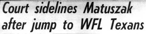 The Texans traveled to Hawaii, without Matuszak, and were bombarded 33-15. After the loss to Hawaii, a disgusted Jim Garrett told the media, "I can only conclude that we can't win in this league with the roster we have now. I have in mind to change the make up of the team little by little." Almost daily, new players were brought into the Texans' camp for workouts. Some of the players were signed, others released. In an effort to shake up the team, coach Garrett released two of the more prominent names on the roster- defensive tackle Al Dotson and safety Art McMahon. On September 6, 1974 the Texans boarded a plane for a trip to Memphis, Tennessee to play the Southmen. In the deep south the Texans again faltered. The Southmen scored quickly in the first quarter, as quarterback John Huarte threw two touchdown passes to Ed Marshall for a 16-0 Memphis lead. As the 15,000 Southmen fans grew louder the Memphis club struck again. After taking over on downs, the Southmen drove downfield and straight threw the Texan defense as JJ Jennings caught a 21-yard pass from Huarte to make it 24-0. The rout was on. The Texan defense was no match for the Memphis juggernaut, as the Southmen took a 31-0 lead into the locker room at halftime. Memphis quarterback John Huarte completed 8 of 16 for 113 yards and three touchdowns in two quarters. The Texans' deepest penetration was to the Memphis 16 in the fourth quarter behind David Mays' quarterbacking. Memphis linebacker Emery Hicks stopped the drive when he stole the ball as Mays went back to pass. Garrett, who was never been one to mix words, went on record as blaming his teams' poor star on "a lack of effort from the players". He went on to add, "Five years ago, we would have had one of the super teams in the WFL. I'm afraid we have players who just don't have enough steam left in the old boiler. Most of our players are playing only in a shadow of what they once were." Houston was 3-6-1 at the halfway point of the WFL season. In a state known for its long riders, "black gold" and tumble weeds, the Texans were highly dependent on the running of veteran Jim Nance. James Solomon Nance was born in Indiana, Pennsylvania and grew up playing football in vacant lots and fields of his hometown. Nance went on to star at the Type University of Name Syracuse and later played for the New England Patriots. Nance twice led the AFL in rushing, and held the single season rushing record of 1,458 yards in a season. Nance entered the 10th week of the WFL season with 330 yards on 108 carries and two touchdowns. He led the Texans in rushing. He also added 7 catches for 43 yards, and led the team in scoring. On the defensive side of the ball, Garland Boyette led the team in tackles with 60, followed by John Mallory with 50 and Ed Mooney with 43. Jim Kanicki and Ron Rydalch led the team in sacks with 4.
