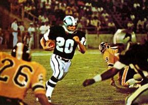 Jeff Davis runs for the Sharks At Honolulu Stadium a small crowd gathered under the South Pacific sunshine. On a day that was more likely to be spent lying on a black sand beach or surfing the blue-green waves, 10,000 football fans sat scattered around the old stadium nicknamed "the Termite Bowl" by local media. Jacksonville and Hawaii didn't do much to convince the fans they made the right choice, putting down $8 for a game ticket. In a defensive battle, the only score of the first quarter came on the first series of downs. Shark rookie quarterback Reggie Oliver threw a 46-yard bomb to Edgar Scott, who blew by Hawaiians Dave Atkinson and Hal Stringert for a 7-0 lead. Then the defenses took over. Neither team could drive the ball down field as the game was dominated by Hawaii's and Jacksonville's front lines. With 2:44 left in the half, newly acquired quarterback Edd Hargett hit John Kelsey for a touchdown and Hawaii converted on the action point to make it 8-7 Hawaiians. The score stayed that way until there was only 2:14 left in the fourth quarter. The winning touchdown came after the Sharks took over following a punt on the Hawaiians 48. On third-and-long, Reggie Oliver, about to be sacked scrambled for 10 yards and a first down. On a second-down play Oliver found Edgar Scott wide open over the middle but Scott dropped the ball. Oliver came right back with the same play and hit former Oakland Raider Drew Buie for the touchdown and a 14-8 Jacksonville win. "Given time I knew we could throw on 'em," said coach new Shark Charlie Tate who received the game ball, "in fact I probably should've had us throwing more on them." Tate also added, "I know how it feels to lose a heartbreaker, we've lost a few ourselves this season." Tate also praised cornerbacks Mike Townsend and Solomon Brannan who both intercepted two passes each to end Hawaiian drives. The Sharks were 3-5, and starting to believe in themselves. Overall, the Sharks lost a total of six games by only a total of 25 points (for an average of 4.25 points a game), the Sharks also lost four games in the final minutes of play. Shark coach Charlie Tate had his team improving. The Sharks, under Tate, had a 1-1 won-lost record. Tate and his staff were preparing for the mighty Memphis Southmen who were coming to the Gator Bowl. September 2, 1974, the Southmen traveled to Jacksonville, Florida. The Southmen, 6-2, were coming off a 26-18 win over the Florida Blazers and featured skilled players such as quarterback John Huarte, running backs JJ Jennings and Willie Spencer, and a tenacious defense. The Sharks defense, led by Glen Gaspard (73 tackles), Ron Coppenbarger (53 tackles) and Fred Abbott and Bob Taterak (39 tackles each) would have their work cut out for them. The Sharks' offense was led by Tommy Durrance who had rushed for 509 yards for the season. 22,169 Shark fans watched Jacksonville play Memphis like champions on every down. With Memphis leading 8-6, Shark running back Tommy Durrance rumbled into the end zone for a 13-8 Shark lead. Yet again, the defense, which had played well for three quarters, would be asked to hold a late lead. The Southmen, one of the more powerful teams in the WFL, began their march. Quarterback John Huarte, an experienced former NFL quarterback, brought Memphis back with short passes and handing off to Willie Spencer. Spencer ran through the Sharks defense en route to a 100-yard game and the Southmen rallied back from their second deficit, and Spencer dove for the winning score to make it final: Memphis 16, Jacksonville 13. The ghost was back in Jacksonville. The coaching staff beside themselves on how to stop the late losses the team was experiencing. Charlie Tate realized the Memphis game seemed to take some of the fight out of his team. Jacksonville was 3-6, and in need of a win. Coach Tate told reporters, "We're just inches away from putting it all together. We fought right down to the wire in every game...we've just been unfortunate." Off the field, the Shark players were also dealing with another type of challenge: no pay. The players hadn't received paychecks since the game with the Hawaiians and tensions were running high. Many players had families to support, and bills to pay, and needed to get the money that was promised to them. Owner Fran Monaco assured the team that the problem was only "temporary" and that adequate arrangements would be made to make up the missing pay. Also, many reports circulated around Jacksonville regarding the dwindling attendance at the Gator Bowl. The Sharks last two home games had drawn 27,000 and 22,000- not bad by WFL standards, but apparently not good enough to allow the team to meet its financial obligations. On September 5, 1974 the Sharks hosted the Philadelphia Bell in an important Eastern Division meeting. The Bell came into the game at 4-5, while Jacksonville was 3-6. A win would allow the Sharks to gain some ground on Philly while still putting them in good shape for a possible playoff spot. The Sharks lost the services of strong safety Ron Coppenbarger to a knee injury. In the pouring rain, 17,851 fans, witnessed an aerial circus that was staged not by the infamous "King" Corcoran of the Bell, but none other than Name Marshall Name University rookie quarterback Reggie Oliver. Oliver completed 14 of 26 for 321 yards and 2 touchdowns as the Sharks defeated Philadelphia 34-30. Tommy Durrance also found the form that made him a leading rusher in the WFL, running for 72 yards and two touchdowns. After the game, a jubilant Oliver shared the credit was his offensive line, "I wasn't sacked once. Our offensive line gave me the best protection of the year and blocked so well for our running game that the passes opened up." The Sharks were 4-6 and about to face their most difficult time of the WFL season in the next month. With a 4-6 won-lost record at the midway point of the season the Sharks were starting to develop some problems off the field. It was confirmed that o