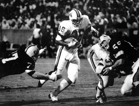 JJ Jennings was named Co-Rookie of the Year in the WFL Memphis traveled to Chicago to take on the Fire. Coming into the game the Fire had injuries to several "key" players. Running back Mark Kellar was out of the game with an injured foot and wide receiver James Scott tore knee ligaments and was out for the season. On the defensive side of the ball, cornerback Joe Womack was injured and the Fire-men found themselves in a three-game losing streak. Memphis would go on to defeat the Fire 25-7. The game was never close. The "Grizzlies" used a ball control offense to dominate possession time and ware out an already weary Chicago defense. The loss was particularly painful for Chicago as star quarterback Virgil Carter was lost for the season with a hand injury. JJ Jennings ran for 132 yards on 20 carries, as Memphis ran up a 15-0 lead at halftime and never looked back. Memphis improved to 10-2, Chicago fell to 7-5. The "Grizzlies" victory march continued to the new WFL city of Shreveport, Louisiana. Shreveport was the new home of the Houston Texans, who were all but ignored in Texas. The Steamer welcomed over 20,000 fans to State Fair Stadium to watch the Southmen. Memphis started rookie Danny White, for the injured John Huarte, and he completed 14 of 27 passes for 170 yards to lead the Southmen to a 17-3 win over the Steamer. The defense allowed a Steamer field goal in the first quarter ad then shut down Shreveport to minimal yardage in the second half. At 11-2, the Southmen began to dominate the WFL. The offense was threatening with John Huarte at quarterback, and rookie Danny White was quickly proving he was a top notch prospect. The Southmen running game was one of the best in the league. JJ Jennings, Willie Spencer, John Harvey and Paul Miles all ran through opposing defenses, and when the running game stalled receivers Ed Marshall, Roger Wallace and Gary Shirk were hauling in passes. A disappointing crowd of 15,000 filled Memorial Stadium as rookie Willie Spencer scored five touchdowns, tying a WFL record, and Memphis bombed Jacksonville 47-19. Spencer gained 137 yards on 20 carries. The Southmen traveled to another new WFL city, Charlotte, North Carolina. The New York Stars transferred to the Carolina city and Memphis gave them an unfriendly welcome defeating the "Charlotte Stars" 27-23. It was their tenth win in a row. Victory number eleven. Memphis, Tennessee. Owner John Bassett sat high above Memorial Stadium looking over the empty seats. Bassett must have been wondering how much more it would take to bring the fans to the stadium in better numbers. Only 15,000 sat scattered around Memorial Stadium as the Southmen continued their victory march 25-15 over the Florida Blazers. Quarterback John Haurte, playing after a three game absence, passes for 212 yards and a touchdown as Memphis sped out to a 18-0 lead and held the Blazers in check the rest of the game. As the WFL suffered from mounting financial problems and a storm of bad press. Memphis took their juggernaut to Portland, Oregon. The Portland Storm, consistently improving over the season, was a team that was suffering from financial problems. The players hadn’t been paid for two weeks and the crowds were dwindling despite the teams’ winning efforts. The game was nationally televised as TVS’ "Game of the Week" and from Portland about 13,000 Storm fans watched from the stands. What they were about to see was unbelievable. The Storm took the field charging with Coach Dick Coury leading the way. The fans, 13,228, sounded more like 30,000 as the team warmed up for the opening kickoff. The Southmen, in their burnt orange road uniforms, looked up at the threatening skies and should’ve considered it an omen. On the Storms’ first series Pete Bethard hit Jon Baker for a 32-yard touchdown pass and a 8-0 lead after the action point. With Portland leading early the "Grizzlies" got a big play when Tim Beamer returned a punt 82 yards for a Memphis touchdown. The action point failed and Portland led 8-7. At half time the Storm held a 15-14 lead. In the third quarter the teams traded field goals and the score was 18-17 Portland. The Storm started on another march downfield. Quarterback Pete Beathard picked apart the Southmen secondary for short passes and Rufus Ferguson galloped past the defensive line. The drive ended when Ferguson broke a tackle in the backfield, spun around, and ran twelve yards for a Portland touchdown and a 25-17 lead. The Storm fans went wild. Ken Patrick added the action point and the Storm led 26-17. The Memphis winning streak was on the line. Coach John McVay and his staff quickly designed plays to get the Southmen one last chance at a touchdown and then, possibly, an on-sides kick. Memphis calmly put together a drive led by rookie Danny White, that drove them to the Storm 2 yard line. White then hit Ed Marshall with a touchdown pass to cut the lead to 26-24. The two teams lined up for the action point. White called the signals dropped back and hit a diving Roger Wallace in the end zone to cut the Portland lead to 26-25. The Civic Stadium crowd was silenced. With only seconds remaining the Southmen lined up for an on-sides kick. Jim Ettinger kicked the ball, which bounced end-over-end through a pile of Storm and Southmen players, and was miraculously recovered by Memphis. Coach John McVay sent out the kicking team to attempt a 48 yard field goal. The chaos of the moment Portland players and fans were in shock. Players quickly shifted into position. Ettinger, head hung to the ground, awaited the snap. Danny White called the signals. As the lines crashed into each other, Storm players strained with out-stretched hands. Ettinger followed through on the kick, which sailed over the wall of Storm and Southmen players, towards the goal posts. John McVay strained to see the flight of the ball, Dick Coury quietly watched and waited. A collective "sigh" rang out as the ball traveled through the night air and floated wide 