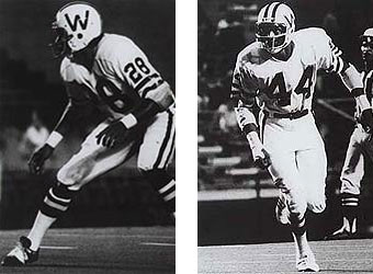 Chicago Winds defensive backs Harry Howard and Ralph Anderson On the field, the Winds signed ex-NFL and former Portland Storm quarterback Pete Beathard. Beathard would join Gilliam and former Fire running backs Mark Kellar and Cyril Pinder to form what the Winds hoped would be a potent offense. Former Fire wide receivers Jack Dolbin and James Scott had departed for the NFL, and the Winds signed former New York Jet Margene Atkins and Tim Gillespie to fill the void. The offensive line was led by center Guy Murdock, who played every down for the Fire in 1974. Steve Wright came out of retirement to join the Winds and teamed with former New York Jet Doug Lowery at the guard position. The Winds signed Scottish place kicker Allan Watson, who also played for the Fire. On defense the Winds were excited about the physical ability and shear strength of Larry Jameson. Jameson teamed with former Fire defenders Ken Sanduk, Chuck Bailey and Mick Heinrich on the defensive line. The linebacking corp was led by former Fire players Tom Roussel and Chuck Kogut, and newcomer Reggie Pleasant. The Winds secondary also had a Chicago Fire fell to it with Harry Howard, Ralph Anderson and Hal Phillips all signing with the team. The only newcomer to the defensive backfield was cornerback Willie Roberts. As the 1975 WFL season approached, the Winds began their marketing and season ticket drive. In 1974 the Fire managed to sell 20,000 season tickets and the Winds front office was hoping for half of that amount. Pullano knew the Chicago football fans would be difficult to win over, and with the reputation of the league in question made the task harder. Weeks before the opening of the '75 season the Winds had sold only 1,600 season tickets, which accounted for about $80,000 in gross receipts. The WFL exhibition season opened for the Winds in Chicago. On a rainy night in July, the Winds lost to the Jacksonville Express 34-23 before only 2,000 fans. Express running back Alfred Haywood punished the Winds with two touchdown runs and quarterback George Mira (formerly of the WFL champion Birmingham Americans) threw for two other scores. The Winds offense managed a late touchdown to make it a close game, but clearly some changes would be needed before the start of the '75 season. In Greensboro, Carolina, the Winds traveled to play the Charlotte Hornets in the final exhibition game. The Hornets came away with a late victory 22-21 before an estimated crowd of 5,000. Wind running back Mark Kellar ran hard for the team, and John Gilliam had four catches to pace the offense. Winds management seemed pleased with the teams' defensive effort- an obvious area of concern. The Chicago Winds traveled to Birmingham, Alabama to play the Vulcans in their first WFL regular season game. At Legion Field, over 21,000 fans watched as both teams battled up and down the field without scoring. Winds receiver John Gilliam was covered effectively by Vulcan cornerback Steve Williams and the Vulcan defense limited Mark Kellar to minimal yardage. In the end the Vulcans came away with a 10-0 win and the Winds traveled on to Shreveport, Louisiana. In Shreveport, the Winds ran straight into running back Jim Nance. Nance, a veteran of the NFL who played past year for the WFL Houston Texans and the Steamer gained over 100 yards as the Steamer pounded Chicago 38-18. In Chicago, the exploits of the Winds went relatively unnoticed. The team seldom received press from the city's major newspapers, the Chicago Tribune and the Chicago Sun-Times, and overall fan support was minimal. General Manager Leo Cahill organized a "Welcome Home Abe" promotion, to promote Winds coach Abe Gibron's return to Chicago. Each adult bringing a young fan to the game would get their child through the gate for $1.00, and the first 5,000 children would receive a free Winds T-Shirt. On a rainy night in Chicago, the Soldier Field lights cast a yellow glow onto the field as 3,502 Winds fans huddled from the elements, as their cheers echoed throughout the empty stands. On the field, the Winds, 0-2, let out a collective sigh following a heart-stopping 25-18 win over the Portland Thunder. The win snapped a fourteen-game losing streak for Chicago's World Football League entry when the old Fire whipped the Southern California Sun for its seventh win in nine games in 1974. Winds quarterback Pete Beathard brought the victory, the first ever sudden death game in Chicago, with a 28-yard touchdown pass to John Gilliam, his former teammate with the NFL's St.Louis Cardinals. The Winds veterans, Harry Howard, Mark Kellar, Tom Roussel and Mick Heinrich to name a few, were former players of the Chicago Fire and celebrated their feat with the media. "Everything Abe has been teaching us this week makes sense now," said Howard who returned an interception for 33 yards to set up a Mark Kellar touchdown run. Mick Heinrich, a defensive end who also weathered the losing string with the Fire: "Man, when I saw Pete's pass going to Gilliam in the end zone, chills went up my back. That's never happened to me before." The Winds held off Portland and bulldozing running back Jim Evenson, who gained 161 yards on 29 carries and stopped Portland in overtime when linebacker Chuck Kogut intercepted a Don Horn pass. Chicago got a second chance and then a scrambling Beathard hit Gilliam for the score. Winds coach Abe Gibron told reporters, "You don't know how good this feels. We made some mistakes out there, but the guys played like hell. You gotta start somewhere." The Winds prepared for their road game in Honolulu against the Hawaiians. With a 1-2 record Chicago hit the island fresh off their first win of the season. Hawaii coach Mike Giddings told reporters, "Abe Gibron is the type of head coach that produces hitters. I know they will be a tough team and with the likes of Gilliam and Beathard, they can score." On a perfect night in Hawaii, 10,313 fans moved about Halwala Stadium. On one sideline, the green and white, New Y