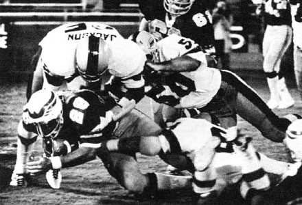 San Antonio Wings running back Jim Strong The Wings traveled to Portland, Oregon to play the Thunder. Norman Bevan, the Wings owner traveled to New York City for an emergency meeting of the WFL's board of governors. In New York, the league's ten owners reportedly debated a number of possibilities: disband the troubled league, fold the weak-drawing Portland and Philadelphia franchises, or deal with the plight of Norman Bevan and his investors. The Wings, plagued by low attendance, was in need of a $450,000 transfusion of money to complete the season. New players signed to the team were making $200-$250 a game, and many other players were asked to take as much as a 25% pay cut. The Wings had averaged about 12,000 a game and had lost a reported $350,000 through eleven weeks of the season. The WFL seemed to be in dire straights, and the Wings seemed to be falling from the very skies that only weeks ago seemed limitless. On the field, Wing quarterback Johnnie Walton ranked third in the WFL with a 49.4 completion percentage for 1,903 yards. He went into the Portland game with 13 touchdowns and 14 interceptions. His leading targets were Willie Frazier, Eddie Richardson and Donnie Joe Morris. Richardson was second in the WFL with 39 receptions for 533 yards, Morris was fourth with 18 receptions for 444 yards. The Wings rushing game was led by Billy Sadler, the third best rusher in the WFL, who rushed for 536 yards and veteran Jim Strong had 521 yards. The Wings were confident they could get back on track against the Portland Thunder. In Portland, under the grayish northwestern skies, a handful of fans (3,818) mingled throughout Civic Stadium. The Wings, shocked by the loss to Philadelphia, and the sudden financial plight of the team, seemed to be rattled, uneasy and focused on survival- not football. The Wings ran straight into a charged Portland Thunder team. The game, marred by physical play featured three WFL penalty records- including a record 19 penalties against Portland for 191 yards, and 10 against San Antonio for 74 yards. While the fists were flying, both teams played an evenly matched game. Trailing 18-11 in the third quarter, San Antonio quarterback Johnnie Walton eluded Dave Costa and threw a picture-perfect pass to Luther Palmer for a 32-yard touchdown and a 18-18 tie. Walton, who completed 18 of 31 passes for 262 yards, had brought back his team from the dead before- Portland stood in the way. San Antonio then drove the length of the field, pushing the Thunder back on their heels, and sent the tough Billy Sadler over from seven yards out for a 25-18 fourth quarter lead. Perry Moss was elated, his team seemed to back on track, and fighting mad, but the Thunder would answer back. Thunder quarterback Don Horn engineered a drive that left Portland at the San Antonio one yard line. Looking around the huddle, Horn's team mates wanted him to take it in on a quarterback sneak- three seconds later; Portland had tied the game on Horn's run 25-25. With 1:14 remaining in the game, Don Horn attempted an action point pass to Rufus Ferguson that was intercepted by San Antonio. With time running out and the Wings looking at their second consecutive loss, quarterback Johnnie Walton drove his team to the Portland 35 where with :04 remaining on the clock Luther Palmer came in to win the game. His attempt sailed wide right. In overtime, the Wings, seemingly defeated, looked flat against the Thunder. Portland's Joe Wylie returned the opening kickoff 21 yards to start the drive. Jim Krieg hauled in a third-down play for 11 yards, and Thunder running back Rufus Ferguson broke runs of 4, 11, 7 and 6 yards- driving Portland to the San Antonio 25 yard line. With silence on the San Antonio bench, Portland kicker Don Warner came out for the winning field goal attempt. Warner booted a perfect kick that gave the Thunder a 28-25 win and sent San Antonio on to Shreveport reeling from a two game losing streak. "They (the Thunder) are a good team; they made their field goal and we didn't," said a dejected Perry Moss in the Wings' dressing room. The Wings had fallen to 7-5, and had lost two games that Moss and his coaching staff and counted on winning- the Southern California Sun, playing better ball every week, were 6-5. While uncertainty surrounded the WFL, the Wings traveled down to the Bayou to face the Shreveport Steamer. Coach Perry Moss was concerned with his teams' performance in Philadelphia and Portland, and was even more concerned with the injury to his starting quarterback Johnnie Walton. Walton would be unable to start against the Steamer due to bruised ribs suffered against the Portland Thunder, ex-NFLer Jerry Tagge would start in his place. On a sunny Louisiana day, the San Antonio Wings saw lightning strike on five separate occasions as the Shreveport Steamer intercepted five San Antonio passes to set up scores. The Wings came crashing down to earth, landing in Three Mile Bayou. Steamer cornerback Daryl Johnson started the rout when he robbed a Tagge pass, returning it to the San Antonio 36 yard line. Five plays later, the Wings defense was watching Steamer running back Jimmy Edward run into the end zone for a 7-0 lead. Lightning stuck again in the second quarter when Garland Boyette intercepted a Tagge pass that led to Jim Nance ramming his way over from two yards out for a 15-0 Shreveport lead at halftime. Wings coach Perry Moss was beside himself in the teams' locker room, trying to rally his players. After a Don Strock field goal, Shreveport again intercepted an errant Tagge pass- moments later Edd Hargett found Mike Burnop in the back of the end zone for a 26-0 Shreveport lead. The Wings then drove 56 yards and scoring on a one-yard run by Jerry Tagge, cutting the lead to 26-8. Lightning struck again. Shreveport, possessed, drove 63 yards on the arm of Edd Hargett as he hit John Odom with a 13-yard scoring pass to make it 34-8. Then John Mallory intercepted a Tagge pass, the third of the day, a